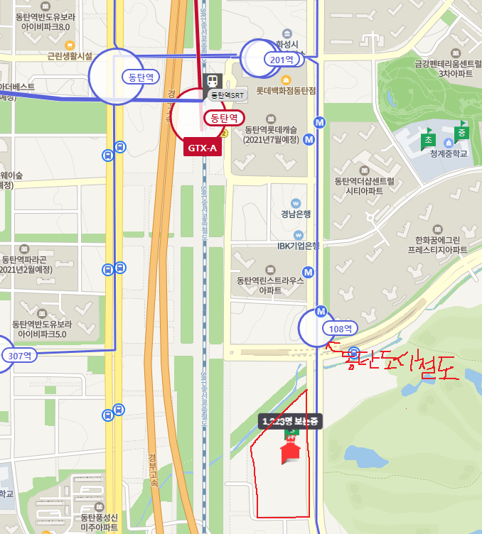 그래도 다행인 것은 단지 바로 앞에 버스 정류장이 존재하여 버스정류장에서 버스 타고 동탄역까지 이동이 가능합니다.
