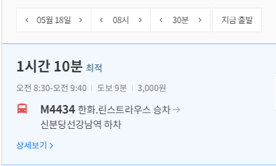 강남역까지 버스로 1시간 10분 찍히네요.