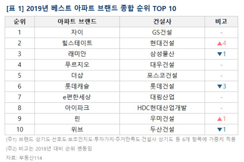그래서 시공능력 기준이 아닌 브랜드의 순위 1위~10위까지도 같이 보려고 합니다.