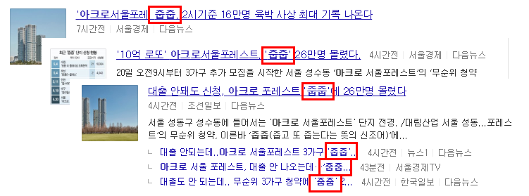 그런데 이 기사들을 보면 자주 등장하는 단어가 보이시죠? 네. 줍줍.